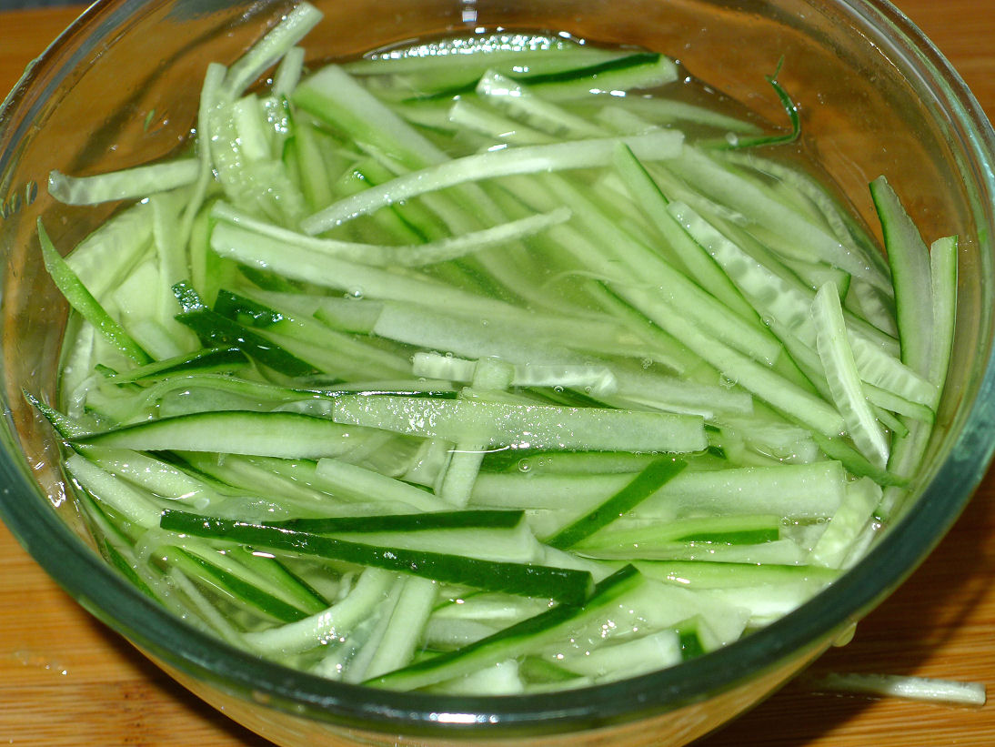 1. 若喜歡青瓜酸一點, 可用米醋和鹽浸十份鐘, 再用凍水洗淨瀝乾